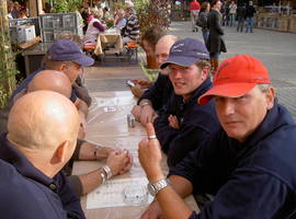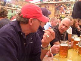 Mir hän uns am Badische Bahnhof am 09:45 troffe. Vo Afang a isch klar gsi, dass es noch Stuttgart goht, mit em Zyl Cannstatter Wasen. E super Volksfescht wie mir bald hän dörfe feschtschtelle. Bevor de Zug abgfahre isch hän mir zur Schtärkig e Kaffi gno. Kurz druf isch de Zug scho mit uns noch Stuttgart los gfahre. In Stuttgart hän mir den im Hotel Espenlaub unseri "Luxuszimmer" bezoge. Zum e chli schlofe hets alle glängt. Noch em Zimmer bezie und ibuffe, isch es ab in d Stadt gange. De Hunger isch gross gsi und so hän mir noch längerem sueche e Schuppe gfunde wo alle zum Ässe und tringge passt het. Früsch gschtergt sin mir uf e "Cannstatter Wasen". Mir sin alli gschpannt gsi was uns erwartet. Bier hets gha in Hülle und Fülle, für alli Schwaben und sogar au für d'Schwizer wo derbi gsi sin. Bier tringge het Hunger gä und so hän mir uns uf e Wäg zum Zält vo de Sonja Renz gmacht. Dört het uns de Roman d Plätz für de Obe reserviert. Roman das hesch sehr sehr guet gmacht. Vo alle beschte Dangg em Organisator. Zwüschedure sin mir immer wieder e Zält witter. Au unterwägs hets immer wieder schöni Sache zum beschtune gha....... E paar vo uns hän de erschti Täil vom Samschtigobe vor e re griechische Bäiz verbrocht bis da Lade drogge gleggt gsi isch......... Treffpunkt Schatten........Am Schluss hän sich die mäischte im Rotliechtmilieu wieder troffe. E paar vo uns hän gscharrt wie verruggt und die andere hän entwäder e Bierli drungge oder sich vo de Husherrin e Fierig durs Etablisement gönnt.... De bescht Uftritt het aber scho unser "Schatte-Hanis" gha. Dä het während em ganze Bummel gschtrotzt wie e junge Schtier. Wos aber druf a cho wär, het är es Päuseli iglegt. De Häiwäg het är aber gschlosse mit de ganze Truppe aträtte. E Superusflug vor unserem 10-Johrjubiläum. E tolle Bummel bi genialem Wätter für alli wo derbi gis sin. Wär gfählt het, isch sälber schuld gsi! |