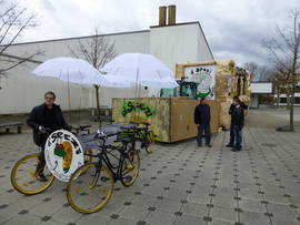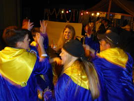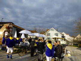Mit e weneli Verschpötig het unser Presi s Wort ergriffe und d Verdanggige vorgno, die neue Mitglieder Martin und Marcel vorgschtellt und de Bruno als neue Fahrer. Au d Sabine het s Wort ergriffe, s Neuscht duregeh und sich bi de Hälfer bedangt. Aschliessend sin mir in Velochäller zum Apéro gange. Es isch diskutiert worde und d Vorfreud vo de Fasnacht isch spürbar gsi. S Fasnachts-Fieber isch langsam aber ischer gschtige. S Lade vo unsere Wäge hän mir am Samschtig-Morge am halbi zähni in Agriff gno. Die Chline und die Grosse hän gholfe so dass es schnäll vorwärts gange isch. Die alte Herre uf em Wäg zum Apèro. Kum losgfahre hän si im Rössli scho e Verschnuuf-Pause müese ilege.... Denn het's warte uf d Velo-Waggis agfange.... Es isch e weneli Zyt vergange bis si aztrampe cho sin. De Cello het `z'erscht no e Sonderysatz müese läischte. Är het im Suchi si Sunneschirm wieder uf Vorderma brocht. Für e Fachma wie de Cello natürlig gar käi Problem. De Apéro und s Mittagässe hän mir denn bim Alisi und de Erika im Party-Käller biko. Alisi und Erika, es isch alles tip-top gsi und d Stimmig bi uns scho usgezäichnet. S Ischto isch als Nögschts uf em Programm gschtande und d Fasnachtsfreud het me jedem agseh. Und denn isch halbi drei gsi und de Umzug isch losgange. Super Fasnachts-Wätter hän mir gha. So het's au nit verwunderet, dass d Bsuecher noch em Umzug no am Schtrosserand bliibe sin und d Stimmig inegsuggt hän. Uns isch es e so rächt gsi. S Nachtässe hän mir im Rössli igno. An dere Schtell em Rolli gueti Besserig. Au ohni Chef isch es usgezäichnet gsi. Wenn's au ohni Chef klappt isch das s gröschti Lob oder? Mit vollem Maage sind alli froh gsi, wieder uf d Gass chönne z go. Unseri Fraue hän dört denn Vollgas gä! Langsam aber sicher isch es denn au für die hartgsottene Fasnächler chalt worde und so het mer sich in d Halle und in d Schiggi zrugg zoge. Mir hän uns am Mändig-Nomitag im Rössli zum Jasse und Chnoble troffe. Gwunne hän nadürlig wieder die Gliche wie s ledscht Joor. Im Reto si Dorfdekorationsbitrag vo de d'Spezi Giftschnägge. S Nachtässe hets bi de Silvia und em Benji gä und d Jutta het Support gläischtet. (D Kochkünscht vom Benji hän sich allerdings ufs Fläsche ufmache beschränggt.) Noch em Nachtässe sin mir den abe ins Schnäggedorf zum Däni ins Pub. De Zischtig ghört de Schnitzelbänggler. Mir hän uns bim Cello in de Schiggi an de Bar igschtimmt und sin aschliessend ins Ambiente de Bängg go zuelose und e guets Ässe gniesse. D Bängg sin no nie so schnäll und nochenand imarschiert wie das Joor. S Bäizeschtärbe in Oberwil macht sich au do bemerkbar.... Es het für d Bänggler halt nume no 6 Bäize zum alaufe. Für d Binninger-Fasnacht hän mir unsere Waage für unser Binggis parat gmacht und sin denn zur Silvia go ässe. Es isch gsi wie an de Oberwiler-Fasnacht. (usgezäichnet) D Siliva und d Jutta hän für's liblige Wohl gsorgt und de Benji het d Fläsche ufgamcht...... In Binninge hän mir uns zerscht bim Boris zum ischtimme troffe. Am drei isch es mit em Umzug losgange und d Binggis hän sich mächtig dri gleggt. Sogar d Bottminger Füürwehr het mit Blauliecht am Umzug mitgmacht. Si sin allerdings schlächt vergläidet gsi. Me het si scho vo wittem erkennt. ???????? Zwäi unzertrennligi sit de Binninger-Fasnacht. Au d Binninger-Schugger hän e Priise Fasnacht vo zwäi d'Spezi Giftschnägge abbiko. Und wär träit unserei Blagede? Natürlig d Sabine. Zum Nachtässe hän mir uns zäme bim Boris troffe und d Fasnacht usklinge lo. De letschde d'Spezi uf em Häimwääg. Em Bruno unserem Fahrer dangge mir für si Ysatz. Du hesch uns guet, unuffellig, ohni Problem und vor allem unfallfrei dur de Umzug dure brocht. Merci viel mol vo allne d'Spezi Giftschnägge 2000 Oberwil. |