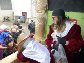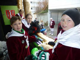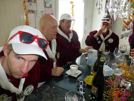 Frytig de 13-i.... und was für e Prachtstag für e Waage-Vernissage. Mir hättes vom Wätter här nid besser chönne präiche. Die Äinte schaffe und die Andere.... wär gwünnt???? De Martin!!! Interessierte Fasnachts-Nochwuchs. D Aschproch vo unsere Presi. S isch s 15. Mol und de Schtolz isch gross bim René. De Dangg goht an alli Gönner, Sponsore und stille Hälfer im Hintergrund. Merci viel mol. Dä Bätsch! De ganzi Schtolz vom Presi. Reto das hesch guet gmacht! Unser Ma hinter der Bar an der Wagevernissage. Machsch di guet Cello! Unglaublig was e so e Fasnacht für Abfallbärg produziert. Gruppefoti noch em Wagelade. Unseri Fahrerinne wo uns zum Alisi brocht hän. Merci viel mol! Vor em Apéro het's ghäisse "Balön ufblose"! Erika und Alisi, beschde Dangg für d Bewirtig. Mir chöme gär wieder. Unser Prässe-Schprächer im Isatz vor em Umzug mit em RegioTVplus. De Reto het rächt gha! De Petrus isch e Oberwiler. Es isch kalt, aber trocke blibe während em Umzug und de Benji het für de Gin Tonic au scho mehr Iswürfel brucht als au scho. D Stimmig bim Nachtässe im Rössli isch vo Afang a scho guet gsi und s Nachtässe wo deRoli mit sindere Crew anezauberet het isch e Hochgnuss gsi. Do de Bewis! S Ässe mues guet gsi si, wenn de Täller e so usgseht, bevor är zrugg in d Chuchi goht. De Horscht het e Balon oder zwäi oder drei oder............. Um Mitternacht isch für alli d'Spezi Träffpunggt in der Schiggi gsi. Dr Deggeli-Schorsch soll schints um 05:14 no e Kontrollgang gmacht ha. Är häig aber käi d'Spezi me uf de Gass gfunde. Am Mäntig isch Kinderfasnacht gsi und wär Luscht und Zyt gha het isch in de Halle go ineluege. Am 4-i hän mir uns im Rössli zum Jasse und Chnoble troffe. Die erscht Rundi het de Roli überno. Merci viel mol. E Zwüschehalt im Ambiente um de Fasnachts-Durscht z lösche und denn ab in d Schiggi zum Cello go Znacht ässe, d.h. für die wo no Hunger gha hän und in dr Lag gsi sin öbbis z ässe. Die Andere hän dehäi iri Fasnachtsbräschte behandlet oder sind suscht wäge irgendere Unpässligkäit ....... nit derbi gsi. "Zehn kläine Negerlein" hesch das Joor scho am Mäntig chönne afo singe. Fasnacht isch e Dur-Schport und nid e Schprint! Mit e me Bödeli sin mir witer zum Däni und hän de Obe im Bub usklinge lo.