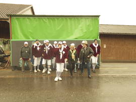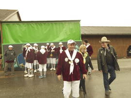 Am Frytig, 5. Februar hän d Wägeler d Traktorverschalig montiert, die letzsche Arbeite am Wage vorgnoh und unser Sprayer de Patrick het nomol Vollgas gä. ![]() No e Sonderisatz vom Cello und denn isch de Wage parat gsi. S Mittagässe hets für uns im Abiente gä. Denn isch es so wit gsi. D Sponsore, Gönner und Passivmitglieder hän sich langsam aber sicher igfunde. Bi däm früehligshafte Wätter het mer gärn verusse gwartet und d Sunneschtrahle gnosse. De René het si Asproch ghalte und de Isatz vo allne Hälfer vor während und noch de Fasnacht verdangt. Au d Sabine het d Asproch für d'Spezi Binggis ghalte und s Sujet 2016 bekannt gä. Am Sunntigmorge isch es no drogge gsi. De Wätterbrincht het aber nur Hudelwätter agsäit gha. Bim Waagelade het sich am Horizont aber öbbis zämebraut. Kum sin mir fertig gsi mit Waagelade, het's agfange rägne. Bim Alisi und de Erika hets bi uns traditionsgemäss e Apéro und zur Stärkig für d Fasnacht s Mittagässe für d Wägeler und d "Velöli-Fahrer" gä. Me het schö bim Mittagässe chönne erahne, dass die Alti Garda uf ihre Drohtesel wohrschinlig nit de Bescht Daag usgsuecht hän... Do e paar Erinnerigs-Foto und denn isch es ans Ischto gange. No het's grägnet! Sogar unseri Sujet-Buebe hän mir bim Ischtoh atroffe. Si hän unser Sujet mit e me polizeilich-wohlwollende Lächle zur Kenntnis gnoh. Wie me de Bilder vom Umzug agseht, het de Petrus e Iseh gha. Püngdlig uf die halbi drei het är d Schleuse gschlosse und mir hän e troggene Umzug dörfe gniesse. So lang wie's gange isch bis d Fansacht ko isch, so schnäll isch de Umzug au scho wieder ume gsi. Mir hän unsere Wage parat gmacht, usegwüscht und de Benji het unseri neui Bar chönne iweihe. De Benji isch i sim Elemänt gsi. Es git doch nüt schöners als Gyn-Tonic usschängge oder?