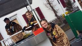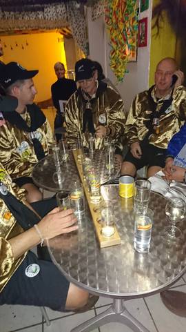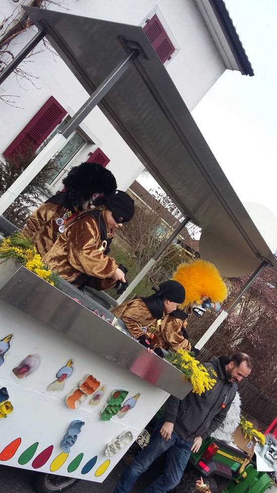 D Vorberäitige für d Waage-Vernissage sind am Morge zügig in Agriff gno worde und fascht jede S Wätter für d Waage-Vernissage 2017 hät nit besser chönne si. Bi schtralendem Sunneschin und agnäme Temperature hän mir unsere Waage und s Sujet 2017 de Passivmitglieder dörfe presentiere. De René und d Sabine hän de Hälfer unsere Dangg usgschproche und mir hoffe, dass Käine vergässe worde isch.... Denn sind mir zum gmüetlige Täil übere gange. E grosses Buffet und jedi Mängi z Dringge isch für uns parat gsi. Am Sunntigmorge sind de Waage und d Wägeli vo de Kinder rutinemässig glade worde. Das Joor het sich alles hautpsächlich um Äier dräit.... S Mittagässe vor em Umzug hän mir traditionsgemäss bi de Erika und em Alisi biko. Danggschön viel mol de Gschtgäber für s gewährte Gaschträcht und für d Bewirtig. Es isch äimol meh usgezäichnet gsi. S Wätter isch fascht so schöne gsi wie an Vortag an de Waage-Vernissage. Äigetlig wünscht sich e Fasnächlter lediglich trockes Wätter und das het uns de Petrus gschänggt. Im Benji sini griene Bächer hän in Oberwil no länger Schpure hinterlo.... und sin au dehäi no länger im Isatz gsi. E Gin Tonic noch em Umzug isch äifach s Bescht. Prost! Mir hän uns in de Schiggi zum Mitternachtstrungg troffe, d.h. bis uf äi Wägeler, dä het sich scho noch em Nachtässe verabschiedet..... Au de Benji het no kurz bevor s hell worde isch de Häiwääg gfunde und für d'Spezi Giftschnägge s Liecht glöscht. De Mäntig ghört de Kinder mit de Kinderfasnacht in de Wehrlinhalle. Mir d'Spezi Giftschnägge hän uns näbedra im Rössli zum Jasse troffe, d.h. vier hän e Schieber gmacht und drei näbedra hän versuecht d Karte richtig z hebe..... Vom Rössli no e Zwüschehalt im Ambiente, bevor mir zäme zum Nachtässe zum Patric und de Chantal häi sin. D Jutta und d Ruth hän uns super bekocht. E härzligs Danggschön vo uns an die bäide Fraue. Für de René isch sogar si bevorzugti Vielle Prune-Fläsche organisiert worde. Natürlig hän au no sunsche e paar d'Spezi Giftschnägge devo profitiert.... Noch em Nachtässe sin mir ab ins Pub und hänge bliebe...... Nume zwei vo uns, häns no zu de 99er gschafft. E so gseht e zfriedene Fasnächtler us..... D'Spezi Giftschnägge am Zyschtig an der Basler-Fasnacht. Mir sind parat für d Binninger-Fasnacht. Die letschti aktivi Fasnacht vom Horscht. Isch schad dass de ufhörsch! Aber äimol e d'Spezi Giftschnägg immer e d'Sepzi Giftschnägg..... Und nomol e Gin-Tonic uf e Horscht! De Horscht als Turban-Waggis. Au d Binninger Fasnacht isch Gschicht. Me gseht sich negscht Joor wieder. Sali zäme und bis bald! |