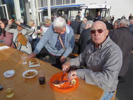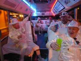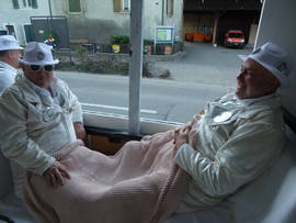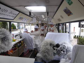 De Schtaubsuger-Waggis bringt unsere Buss vor de Vernissage uf Hochglanz. Bi Sunneschin und früehsummerlige Temperature wartet unser Bus uf unseri Passivmitglieder. Es isch alles parat! Mir warte tiefeentspannt uf unseri Gäscht. Und scho sind unseri Passivmitglieder do gsi und e gmietlige Nomitag het agfange. Für Nochwuchs bi de d'Spezi Giftschnägge isch gsorgt. Nit nur de FCB het e Brasilianer. Au mir hän e so e Ballzauberer (mit de ganze Familie) chönne verpflichte. Do Unseri tatkräftige Hälferinne in de Chuchi hän uns a unserem Jubiläum d Arbet abgno. Härzlige Dangg, ihr händ das super gmacht. Mir chönte uns problemlos dra gwöhne… Es het das Joor für alli Awäsende e Sunneplätzli gha. Das Joor het d Farb am Bus während de Vernissage troggnet… De Patric im Isatz bis am Schluss. Di Isatz het sich wirglig glohnt und mir hän e riese Freud an unserem Bus. Härzlige Dangg vo alle d'Spezi Giftschnägge. Und scho sind d Gaschtro-Noome im Amarsch. Dangge viel mol für dä tolli Uftritt und denn wünsche mir euch e scheeni Basler-Fasnacht. Wie all Joor het sich de René bi de Hälferinne und Hälfer für ihre Isatz zum Wohl vo de d'Spezi Giftschnägge bedanggt. Äine vo de Alte d'Spezi Giftschnägge. Zfriede und voller Vorfreud uf d Fasnacht 2020. De Platz für Räppli, Rose, Zitrone und Däfeli isch das Joor bim Belade e weneli igschränggt gsi. Mitgno hän mir aber trotzdäm alles Wurfmaterial. Unterwägs zum Mittagässe bi de Erika und em Alisi. Benji, do macht dir doch tätsächlig Äine dini Gin/Tonic-Bar schtritig! De Cello het während em Apéro nomol e Bauschtell ufgmacht und unser Brasilianer het d Usfüehrig überno. E wenli früschei Luft oder e Lungebisquit und denn hets e feinr Mittagässe für alli gä. Zum Abschied no e Gruppebild mit de Gaschtgäber. Merci viel mol für d Verköschtigung. Mir fühle uns geehrt. Unterwägs zum Isstoh. Jede macht si Ding. De Benji isch am Irichte vo de Bar und de Böbbi isch a de letzscht Apassige vo sim Göschtüm. (Bim Gilet bisch glaub e weneli drus gwachse und d Hose hätte vermuetlig e paar Hoseträger verträit…) Am halbi drei isch es mit em Umzug losgange und unser Vortrab isch losmarschiert. De Umzug in vollem Gang. Jetzt isch Benji-Zyt! De Barbetrieb isch eröffnet! S Nachtässe hän mir bi de Elisabeth im Rössli gha. Dangge viel mol auf für de Nachschlag für unsere Brasilianer. Was isch au los? Käini Bsuecher das Joor in de Wehrlinhalle? Was sind das für Kollege...? Hogge im Garte vo de Schiggi ufenand obe und mir ganz eläi im erschte Schdogg. Adiö Oberwiler-Fasnacht! D Läimetal-Rundfahrt am Mäntig het für uns bi prächtigem Wätter - aber mit Verzögerig -gschtartet. Em Benji hän Grundnarigsmittel gefählt: Käi Gin, käi Is, käini Zitrone... aifach nüt! Stopp bim Pronto-Shop in Therwil. Käi Is säit de Cello. Doch noch Is! Für de Benji isch d Wält wieder in Ordnig gsi und är het sich an d Arbeit gmacht. Es isch sicher käine verdurschtet... Noch em erschte Zwüschehalt bi de 99-er in de Schüre und im Träumli isch es witter zu de Gugger gange. und witter zu de Aescher. Die hän bi däm Prachtswätter scho usegschtuelt gha. Fahrt noch Biel-Benken zum Nachtässe. Nachtässe im Brunne in Biel-Benken. Ruckfahrt in d Häimat ins Schnäggedorf. Äu em Röggli hets gfalle, aber är het uf em Häimwäg scho wieder e Kälteschub verschpürt. De Bus wird bis zur Binninger-Fasnacht dicht gmacht. No öbbis gege de Durscht und no Äine und no Äine… Am Schluss sind nur do e paar d'Spezi im Schnäggedorf unterwägs gsi. Witter im intärne Berich… |