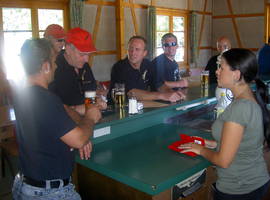 In Eigeltinge sind mir dirägt in "Erlebnispark Lochmühle" gfahre und hän uns dert gschtergt. Aschliessend hän mir uns uf e Wäg an d "Bureolympiade" gmacht. De Böbbi, de Benschi, de Urs und de Adrian hän sich aschliessend in Schtäibruch zum Abenteuer "Seilbahn - Abseilen" ufgmacht. Es isch e Supersach gsi. Alli wo knäift hän oder sunscht e Vorwand vorgschobe hän sin sälber gschuld gsi..... E feins Nachtässe und no e paar Dringgs hän de Obe abgrundet. Spass het's gmacht. Nume gschlofe häige aschliessend die Wenigschte..........